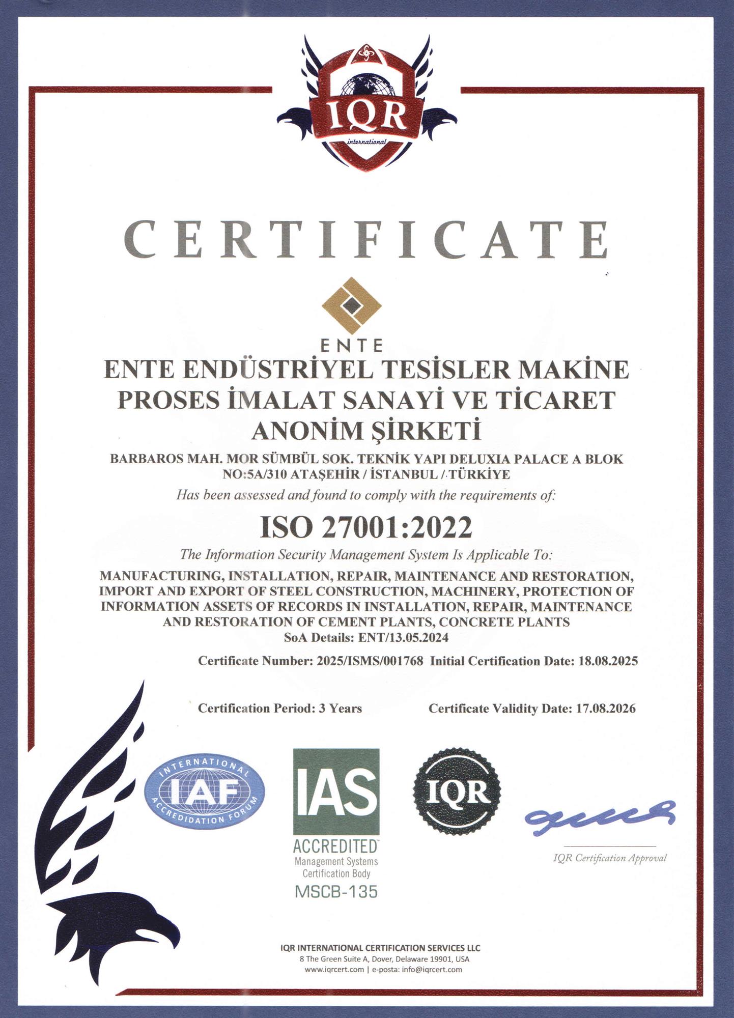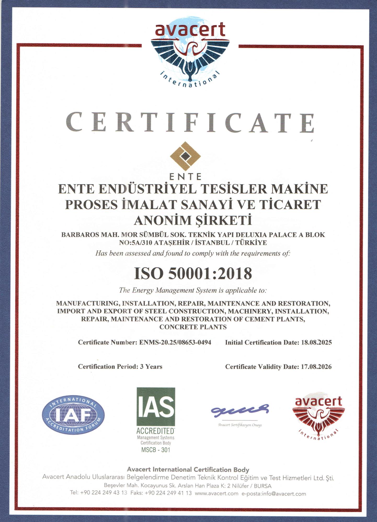 As ENTE, we operate by embracing international standards in quality, safety, and sustainability. Our primary goals include providing our customers with the highest quality, continuously improving our processes, and operating in compliance with internationally recognized standards.